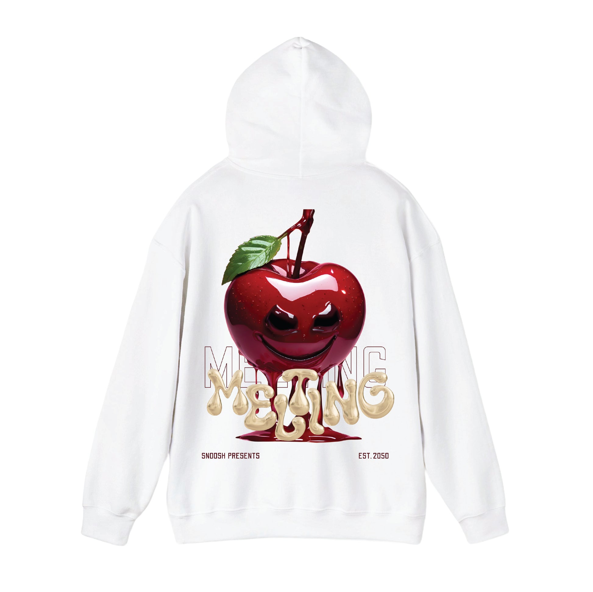 This hoodie features a bold and playful design with a glossy red apple🍎 graphic. The front showcases a small apple with the phrase “Some people are worth melting for”, while the back highlights a large, mischievous apple dripping with creamy text that reads “Melting”. Cozy, eye-catching, and full of personality—perfect for making a statement while staying comfy♥.